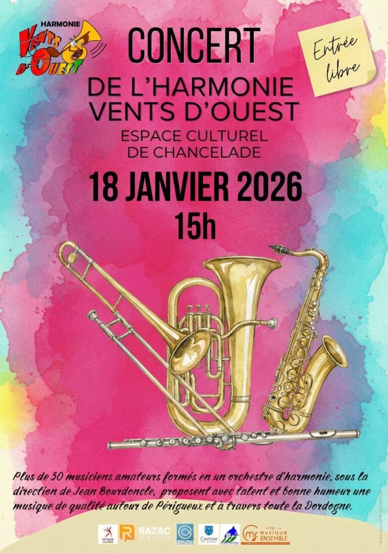 Concert de l’Harmonie Vents d’Ouest à Chancelade le 18 janvier 2026